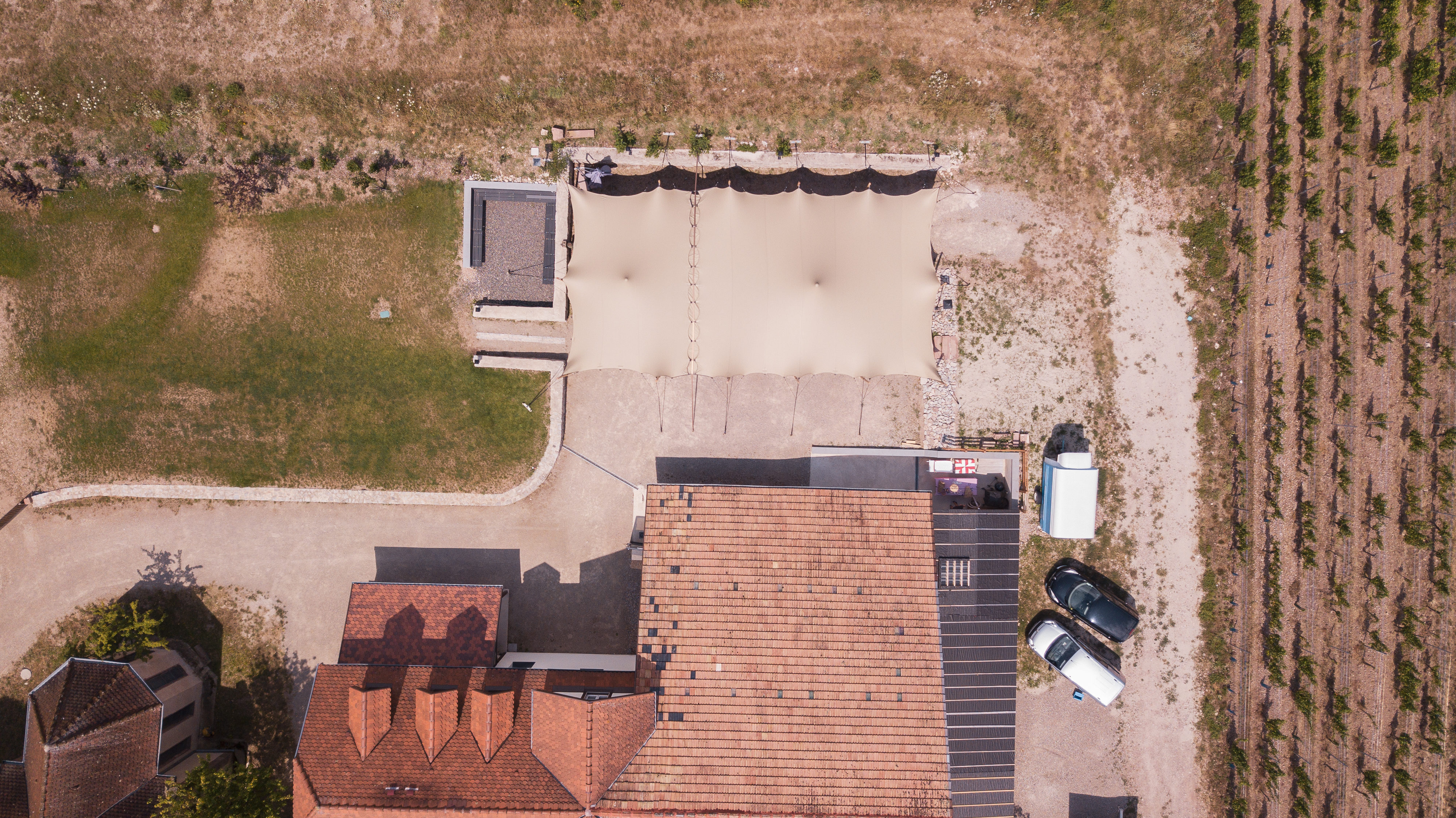 Le site du Taennel, situé en lisière de forêt et en surplomb des vignes, offre un décor spectaculaire mais nécessite une approche technique précise. L’espace disponible étant limité, notre équipe a réalisé une visite de repérage en amont, avec prises de mesures détaillées pour garantir la faisabilité du projet. Cette préparation minutieuse nous a permis de positionner les deux tentes avec justesse, sans altérer la beauté du lieu, tout en offrant un espace abrité, ouvert et harmonieux.
